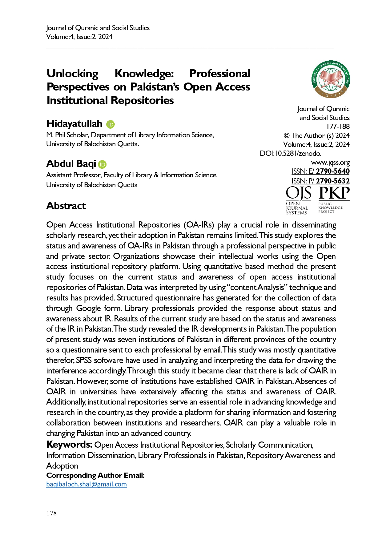 Vol. 4 No. 2 (2024): Journal of Quranic and Social Studies